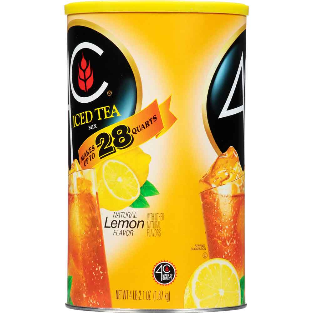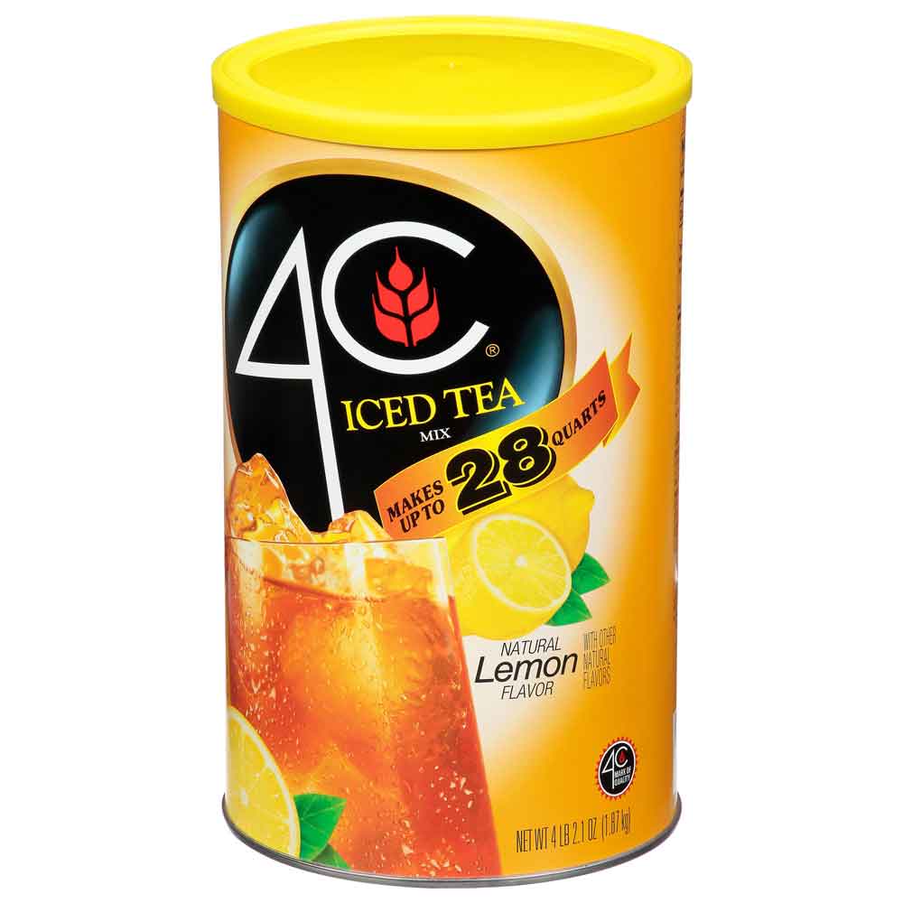 When life handed us lemons, we made the best Lemon Iced Tea Mix around. 4C Lemon Iced Tea Mix is an unbeatable combination of black tea, real sugar and natural lemon flavor. Makes up to 28 quarts and is packed in an easy-open canister with a measuring scoop to make your life easy.