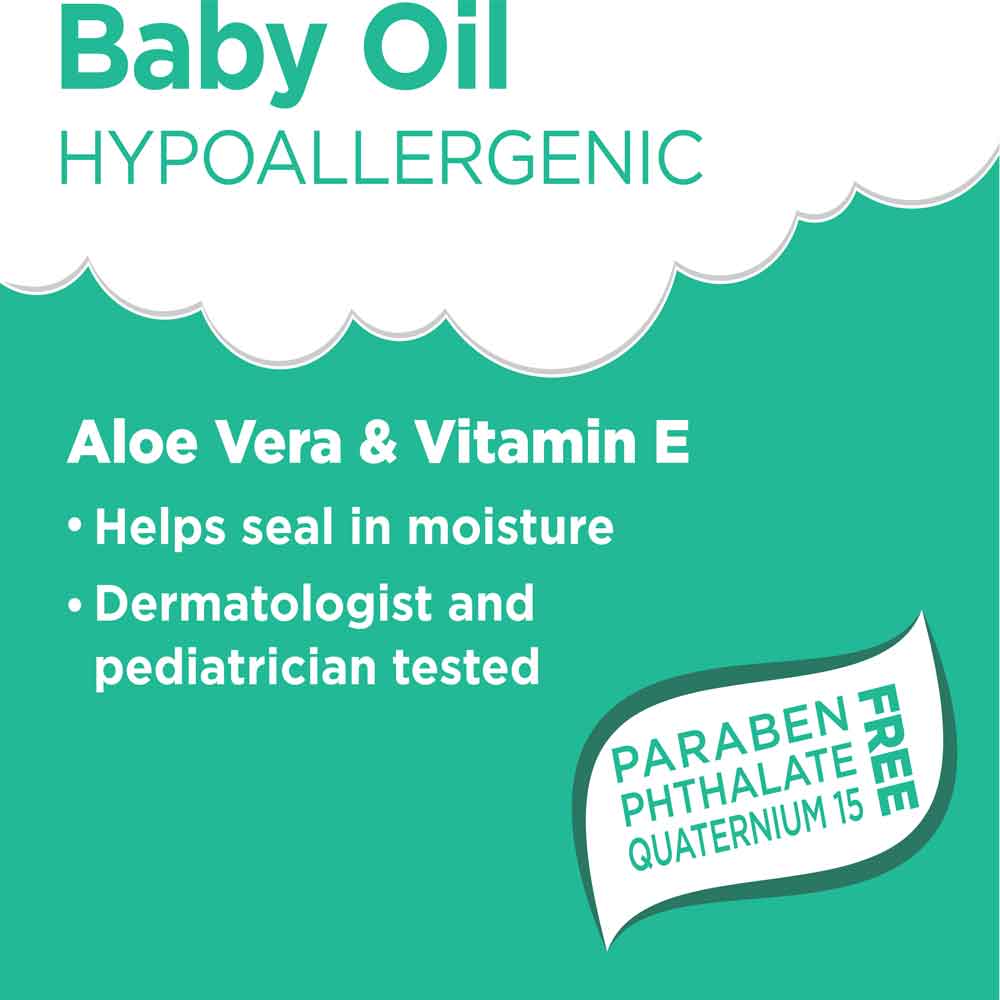Equate Baby Hypoallergenic Baby Oil seals in moisture and leaves your skin feeling touchable soft. The hypoallergenic aloe vera and vitamin E formula contains no paraben, phthalate, or quaternion 15, and has been dermatologist and pediatrician tested. It is gentle enough for those with sensitive skin and safe to add to your baby’s bath time, as well. This luxurious oil isn’t just for little ones – Use it to enhance your own skincare routine, warm it up and use it as a massage oil or add some to your foot soak for an extra-soothing treat. This oil will soften your skin and protect it from moisture loss with a light, delicate scent. You’ll find it to be the ideal choice for the whole family! with so many uses at such an affordable price, Equate Baby Hypoallergenic Baby Oil is the perfect addition to your bathroom cabinet. A lightly scented & gentle baby oil that helps moisturize and soften baby’s skin.