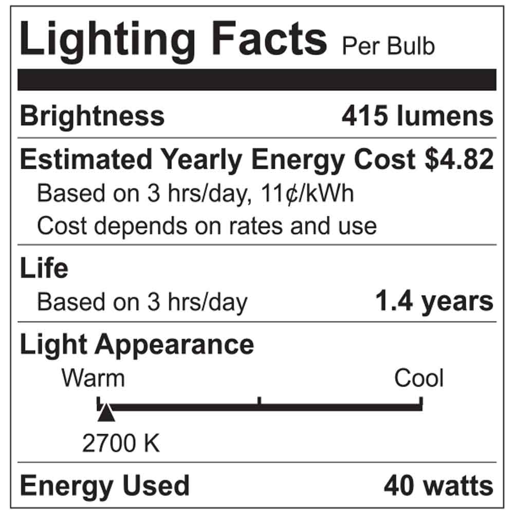 This GE 40 Watts A15 Appliance Light Bulb will let you see what you need whether you’re cooking in your kitchen or keeping something fresh and cold. It’s designed to be used in many household appliances such as microwaves, refrigerators and ovens. This 40W bulb features a medium-size base and clear glass with a rugged filament that resists vibrations and sudden shocks. It’s also made to withstand high/low temperatures and can last for up to 1,500 hours. Stock up on these GE appliance bulbs so you always have replacements on hand.
