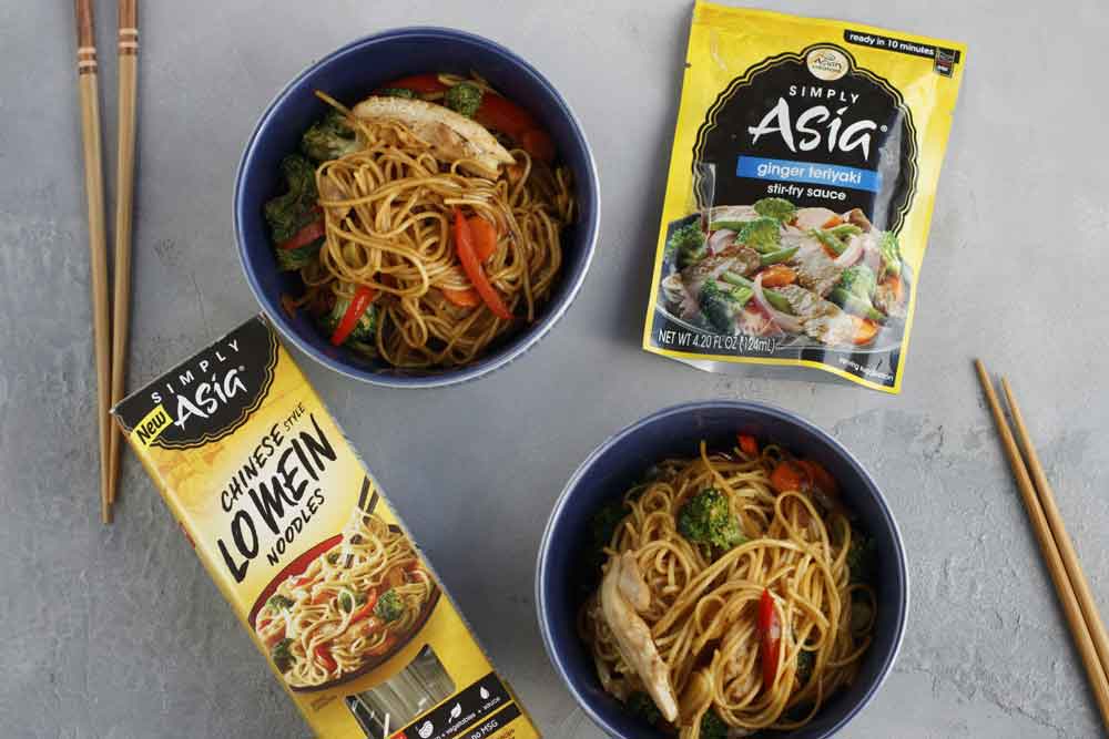 Denser and thicker than other Asian noodles, these are perfect for absorbing the rich sauce that is traditional to lo mein dishes – and ready in 6 minutes! Just add chicken and veggies.