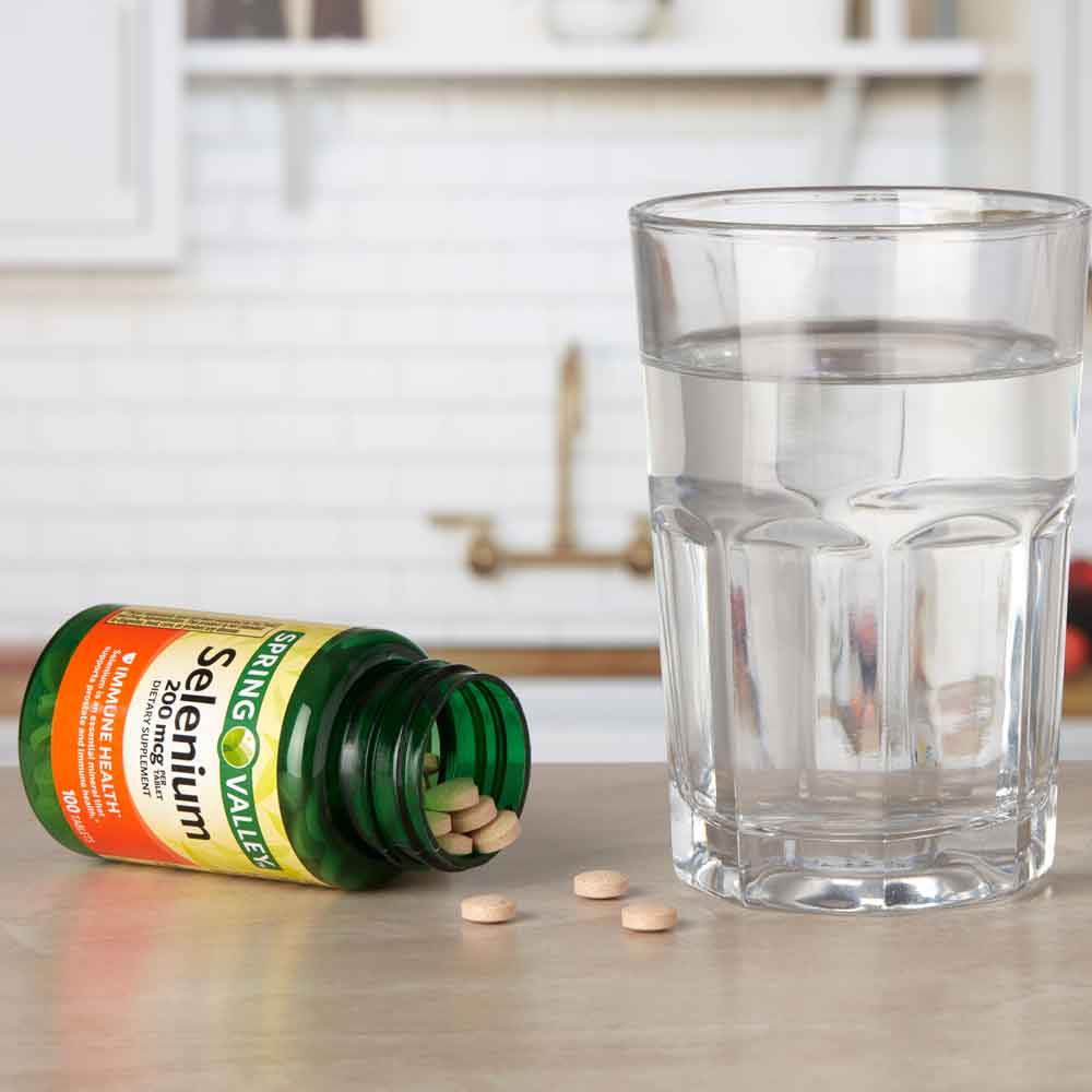 Spring Valley Selenium Dietary Supplement, 200 mcg is a dietary supplement that supports your prostate and immune health. These tablets contain no milk or milk derivatives, lactose, sugar, preservatives, soy, artificial color, or artificial flavor, and contain less than 5 milligrams of sodium per serving. The recommended dosage is one tablet daily, preferably with a meal. You can rest assured our Spring Valley Selenium Dietary Supplement, 200 mcg is produced with strict quality guidelines and backed by our quality guarantee.