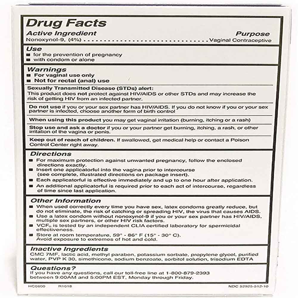 VCF Vaginal Contraceptive Gel, 1 Pack of 10 Pre-Filled Applicators 2.55 Gram